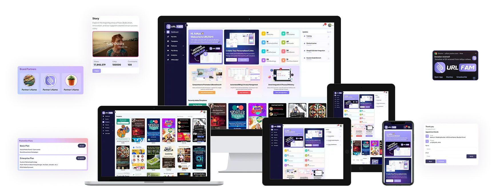 Instead of a boring list of links, URL-FAM allows you to create an immersive experience. Your visitors can browse products, watch videos, book appointments, and—most importantly—complete a purchase without ever leaving the page. No redirects to Stripe. No jumping to a browser. Just a seamless, app-like experience that keeps the user engaged.
